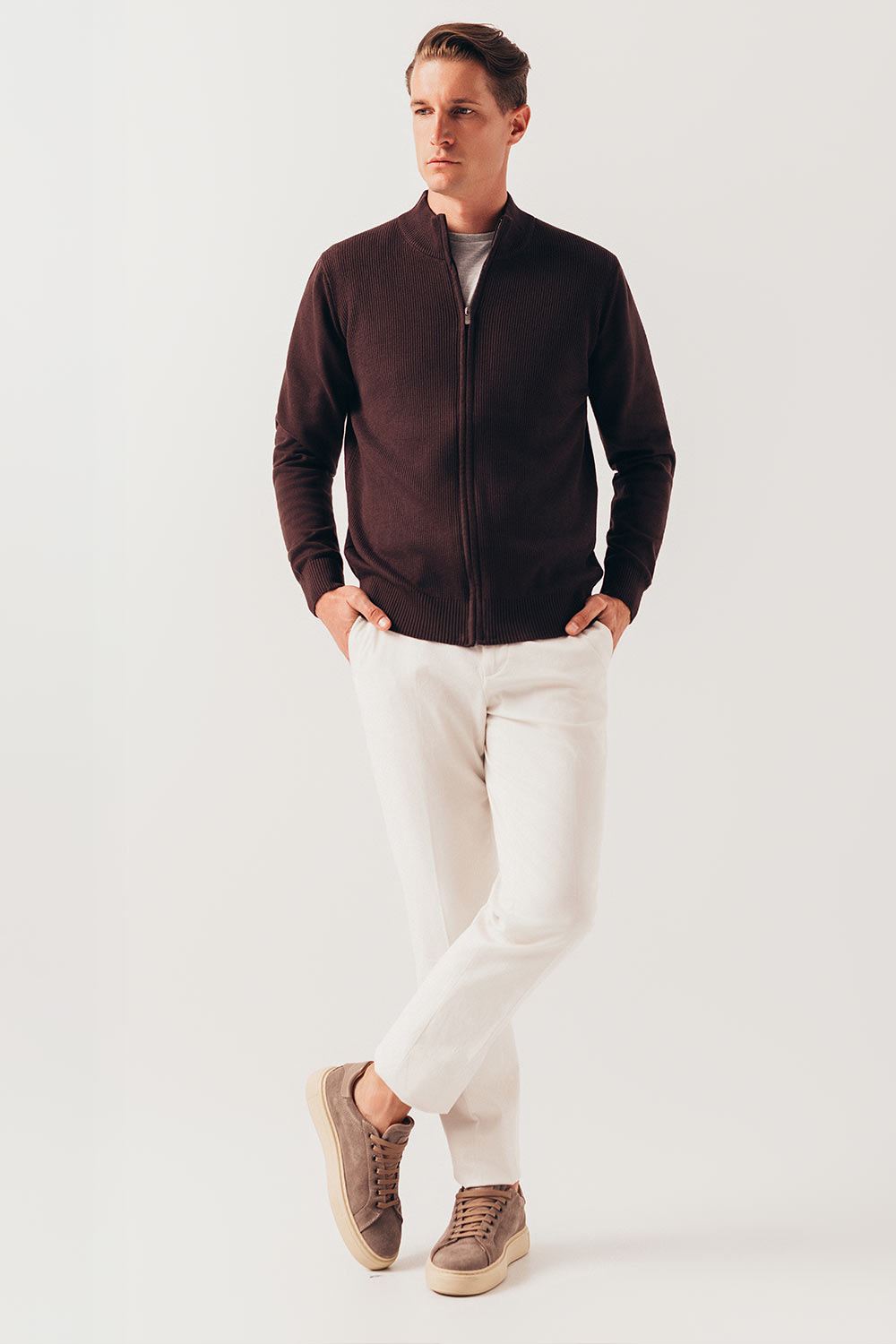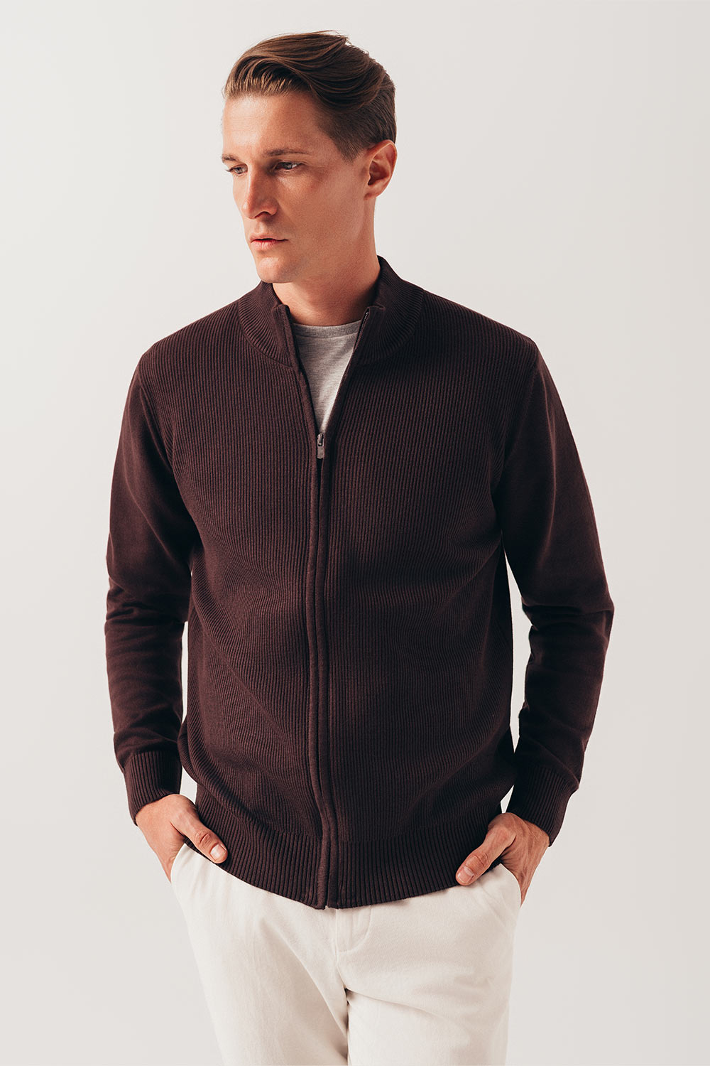 Braon rebrasti zip džemper 120C