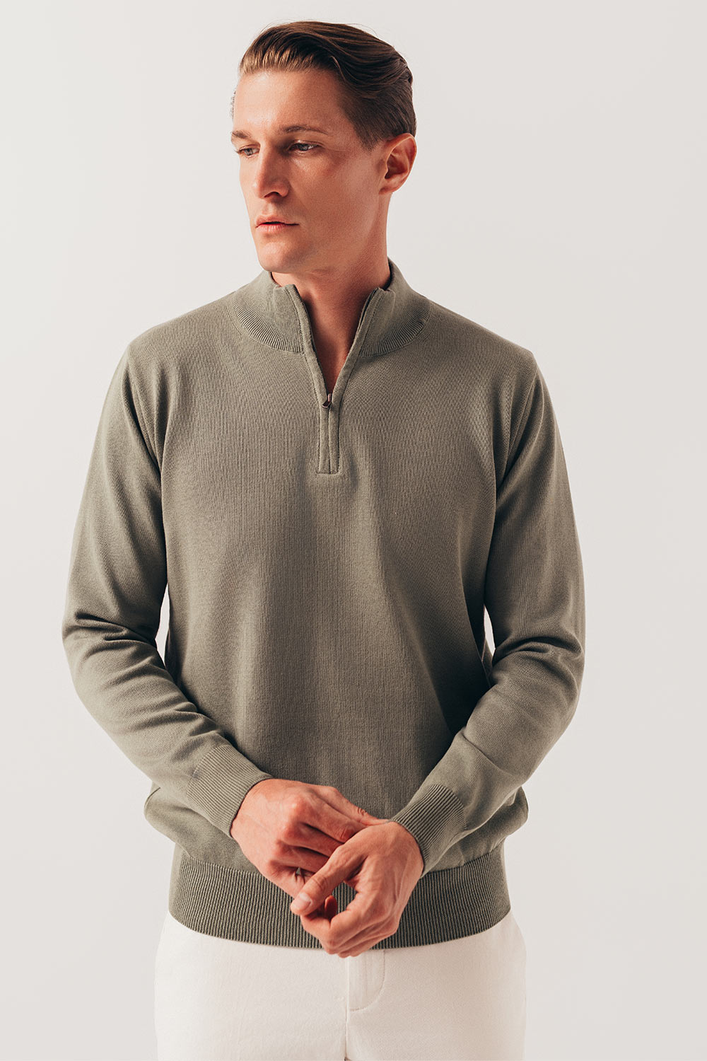 Garinello half zip džemper je neizostavan deo vašeg garderobera. Izrađen od ekstra finog pamuka. Praktičan za kombinovanje. Odlično se uklapa uz majicu, košulju, pantalone ili farmerke. Pogodan za svaku priliku. Sitne rebraste ramfle na rukavima i donjem delu.