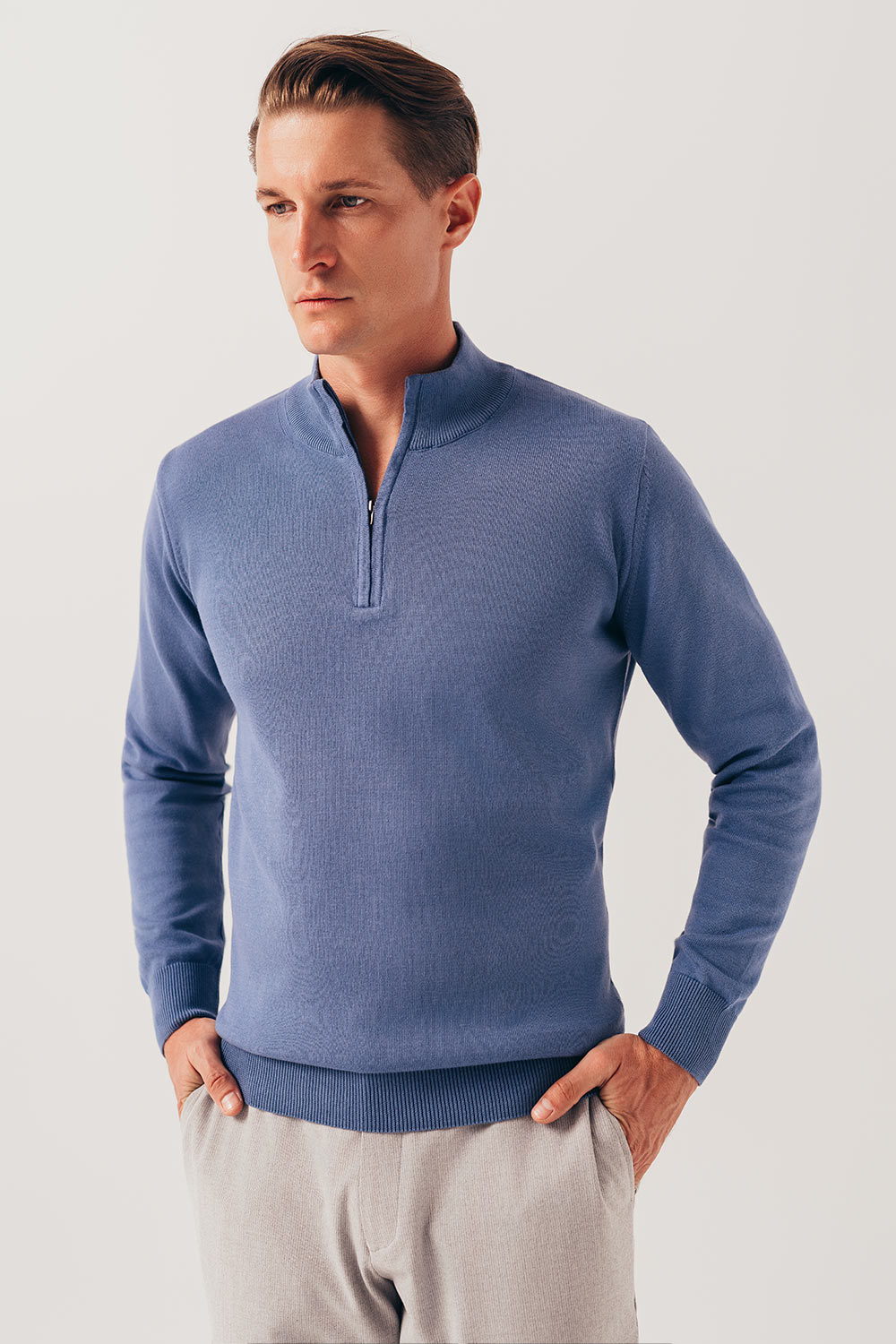 Garinello half zip džemper je neizostavan deo vašeg garderobera. Izrađen od ekstra finog pamuka. Praktičan za kombinovanje. Odlično se uklapa uz majicu, košulju, pantalone ili farmerke. Pogodan za svaku priliku. Sitne rebraste ramfle na rukavima i donjem delu.
