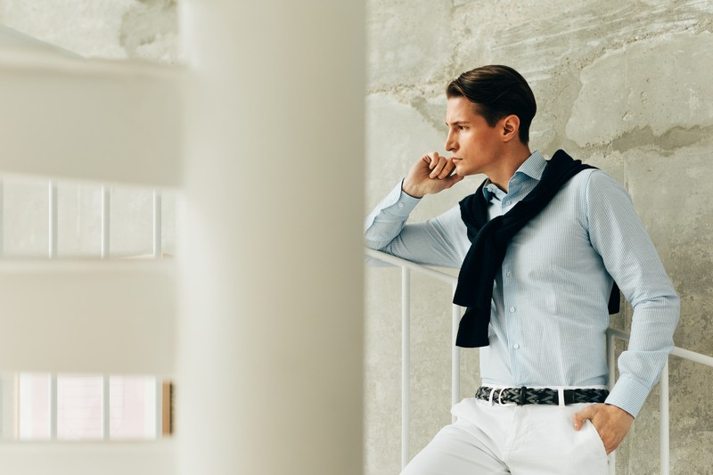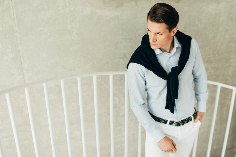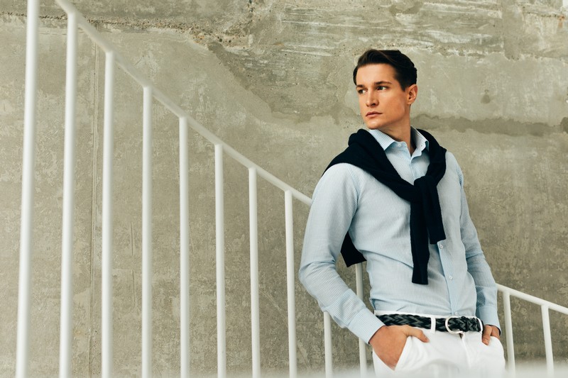 Bela prugasta Easy care košulja sa francuskom kragnom (781A)
