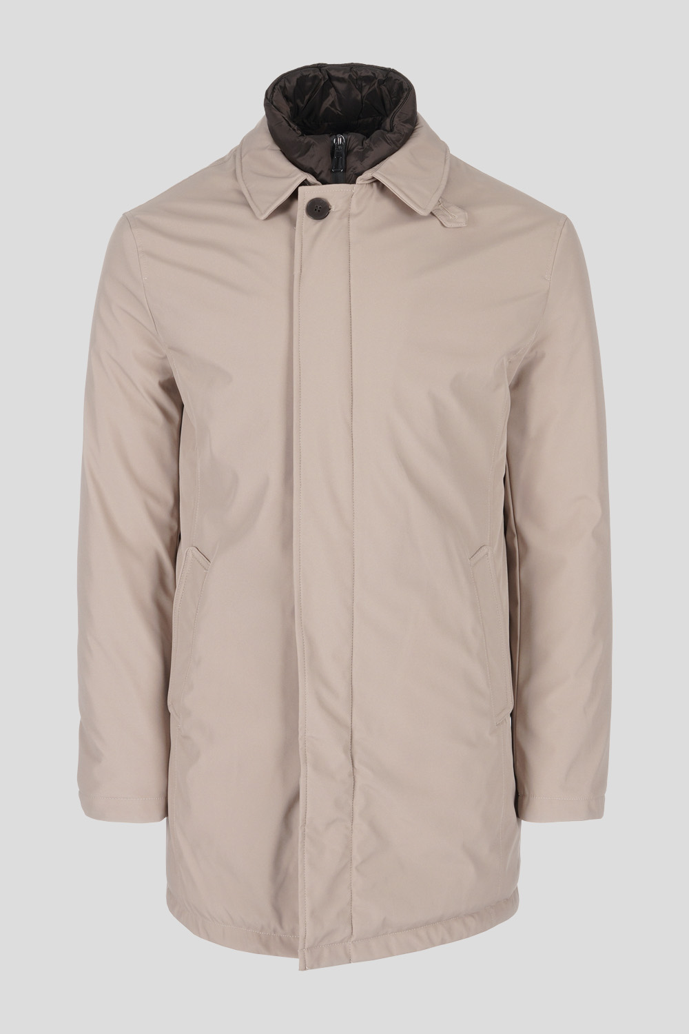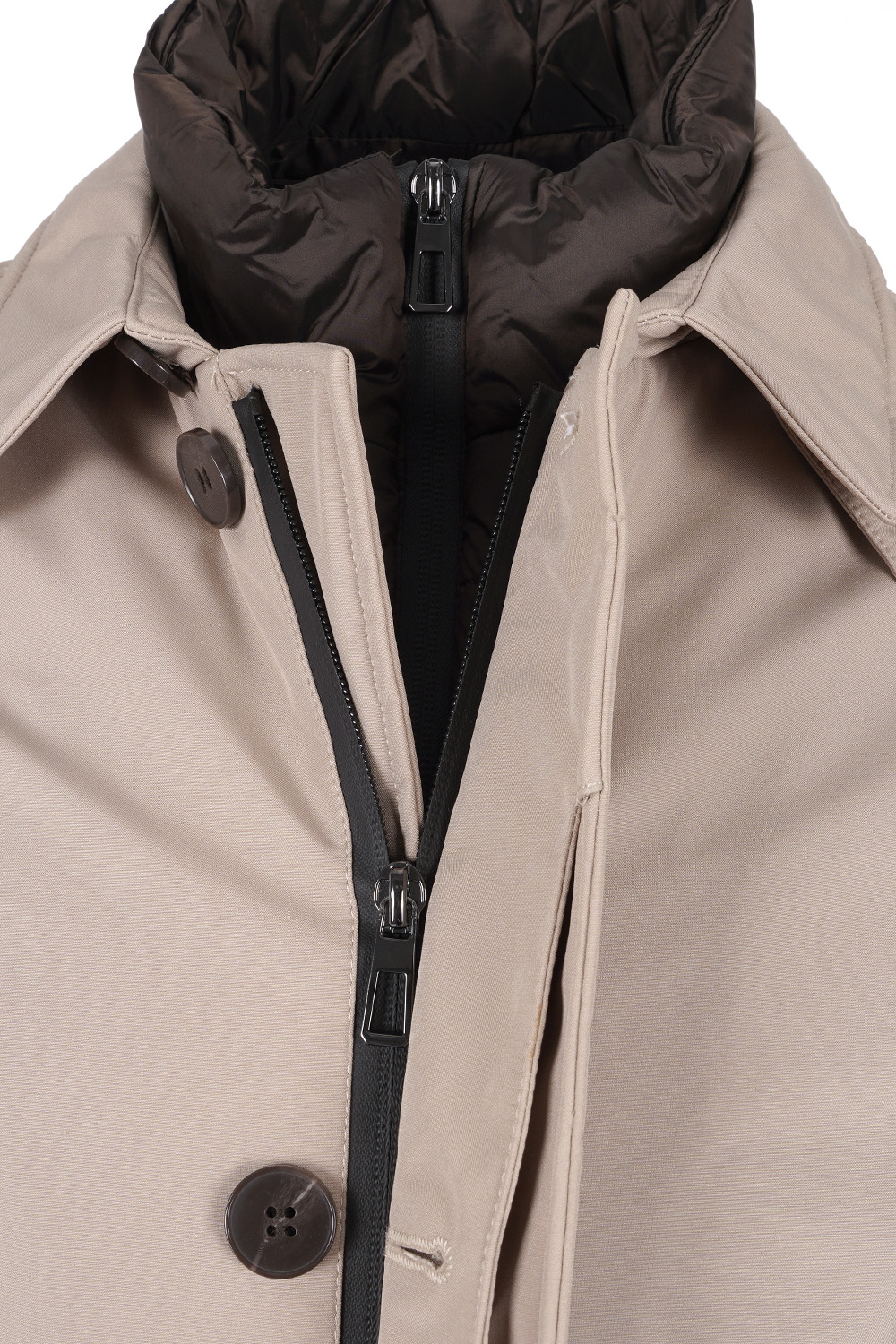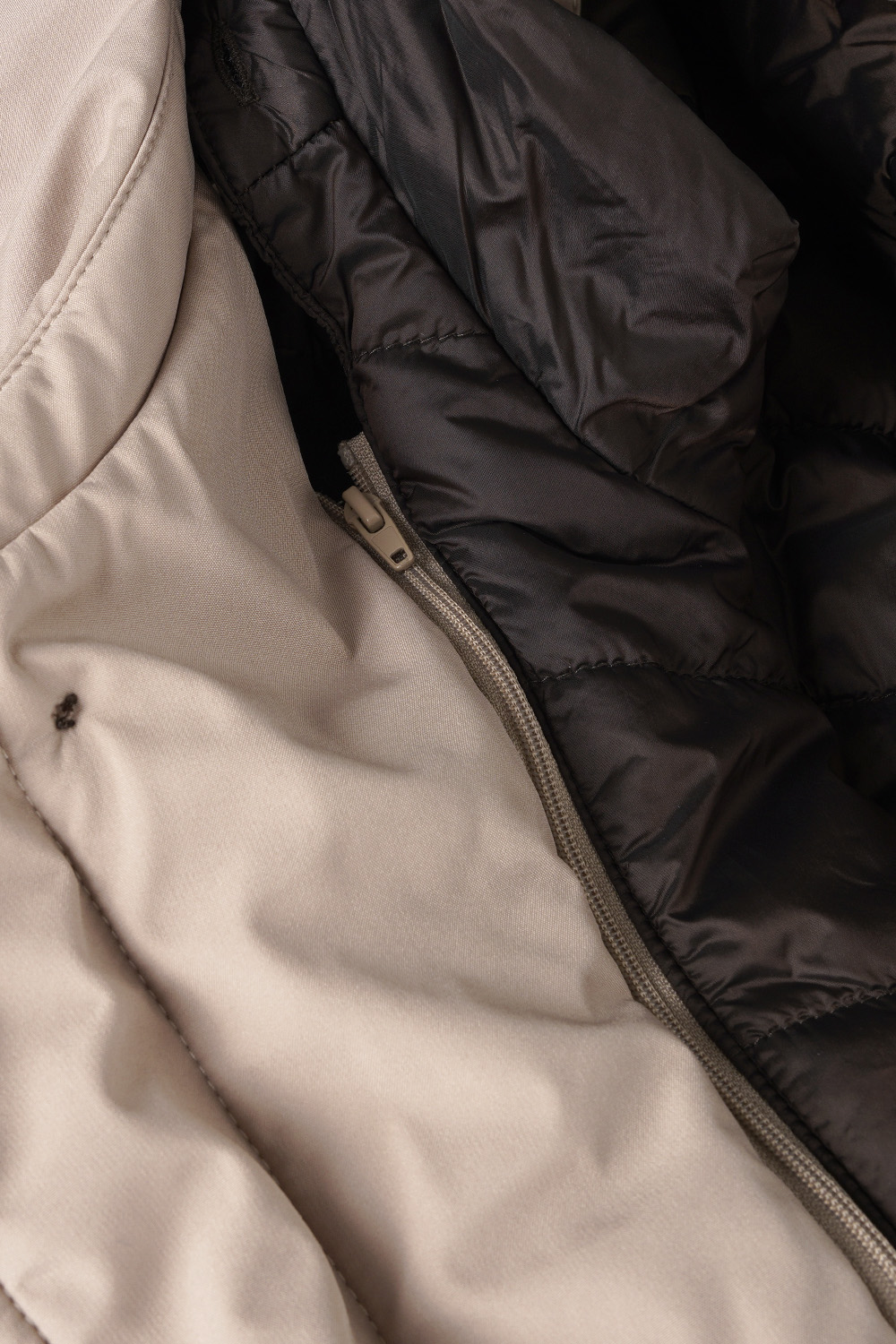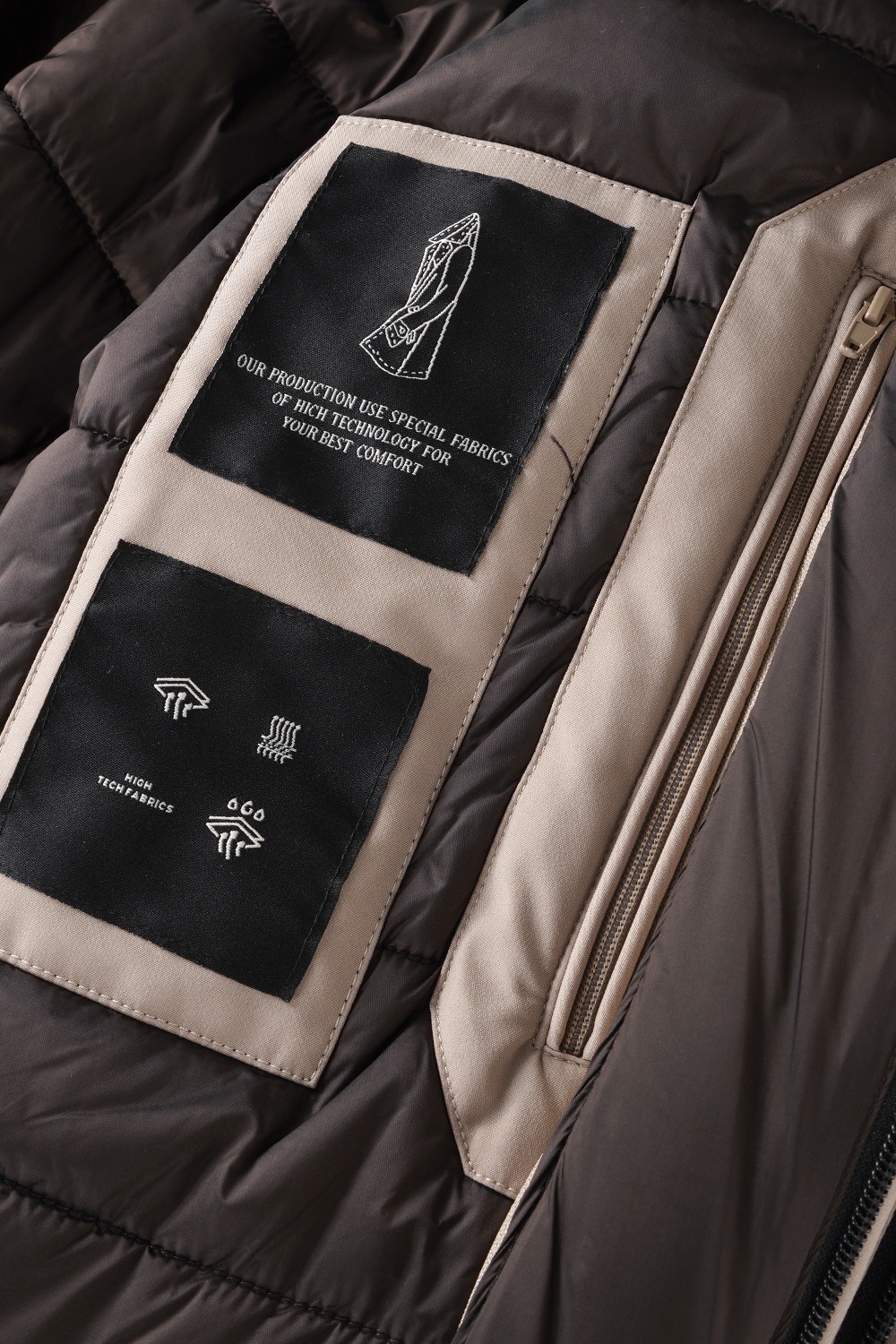 Elegantna jakna sa umetkom koji se skida. Poseduje duplo kopčanje, rajsferšlus sa preklopom na dugmad. Jedan šlic na zadnjoj strani i dva kosa bočna džepa. Odličan komad garderobe za hladnije dane bilo da vam je potrebna za formalni ili casual izgled. Izuzetno topla, otporna na manje padavine i vetar.