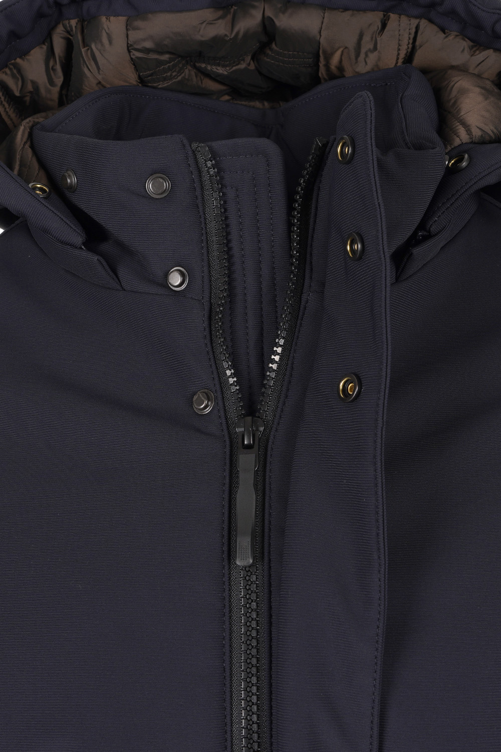 Elegantna jakna sa kapuljačom koja se skida. Poseduje rajsferšlus sa preklopom, dva kosa bočna džepa i visoku kragnu. Odličan komad garderobe za hladnije dane bilo da vam je potrebna za formalni ili casual izgled. Izuzetno topla, otporna na manje padavine i vetar.