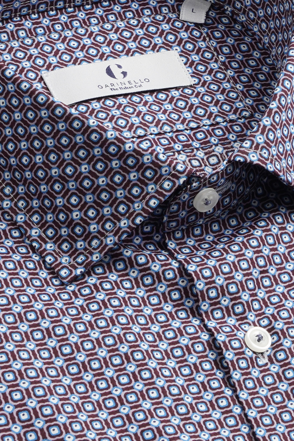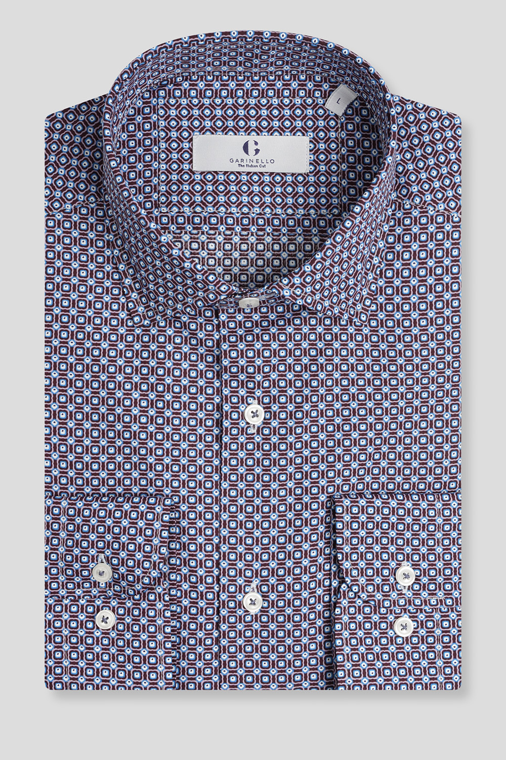Bordo print košulja sa plavim detaljima slim fit 753J