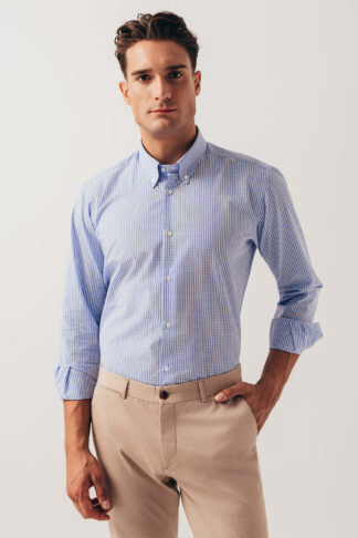 Sniženje 30%Svetloplava karirana BD košulja regular slim fit (782A)