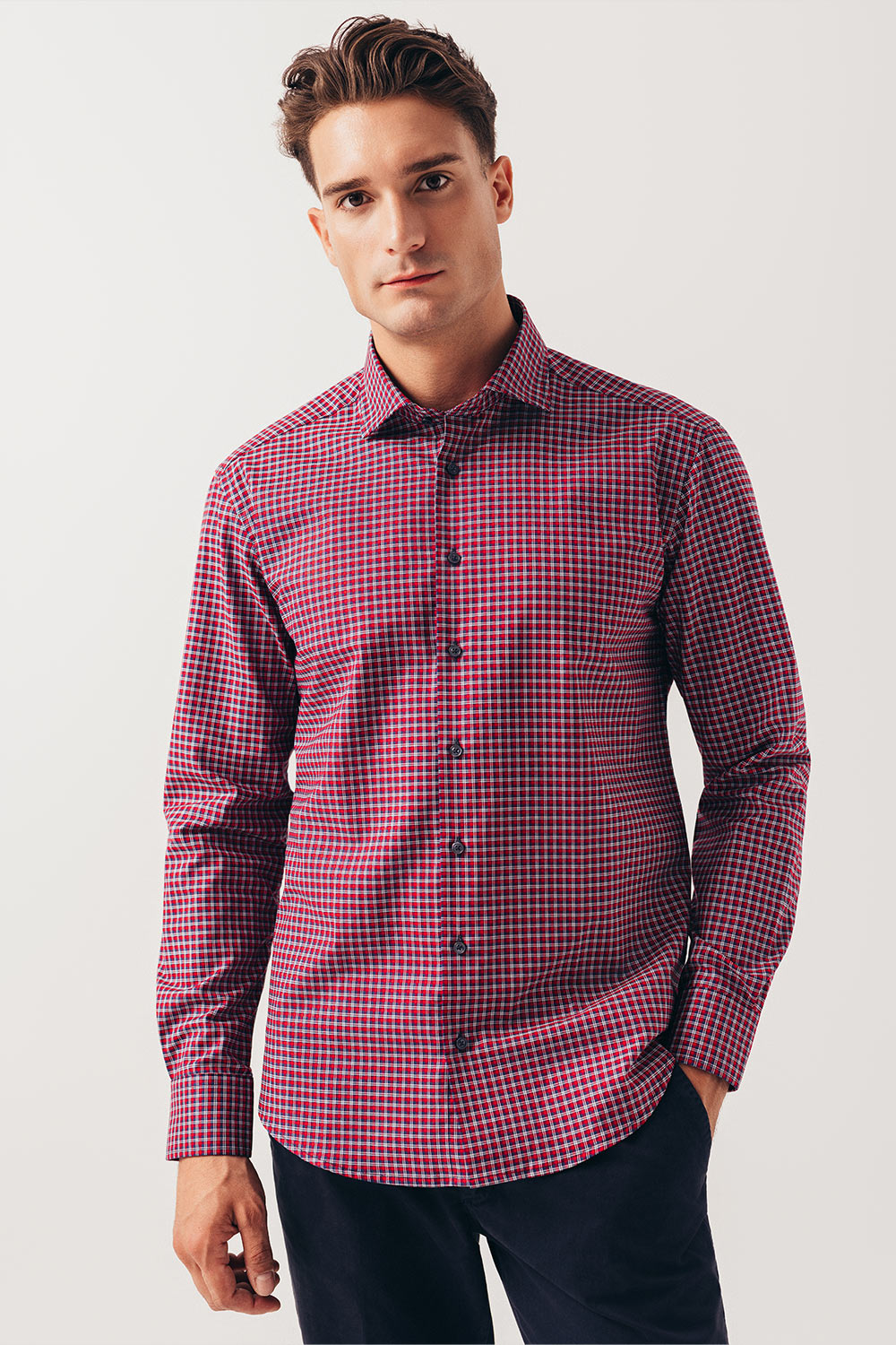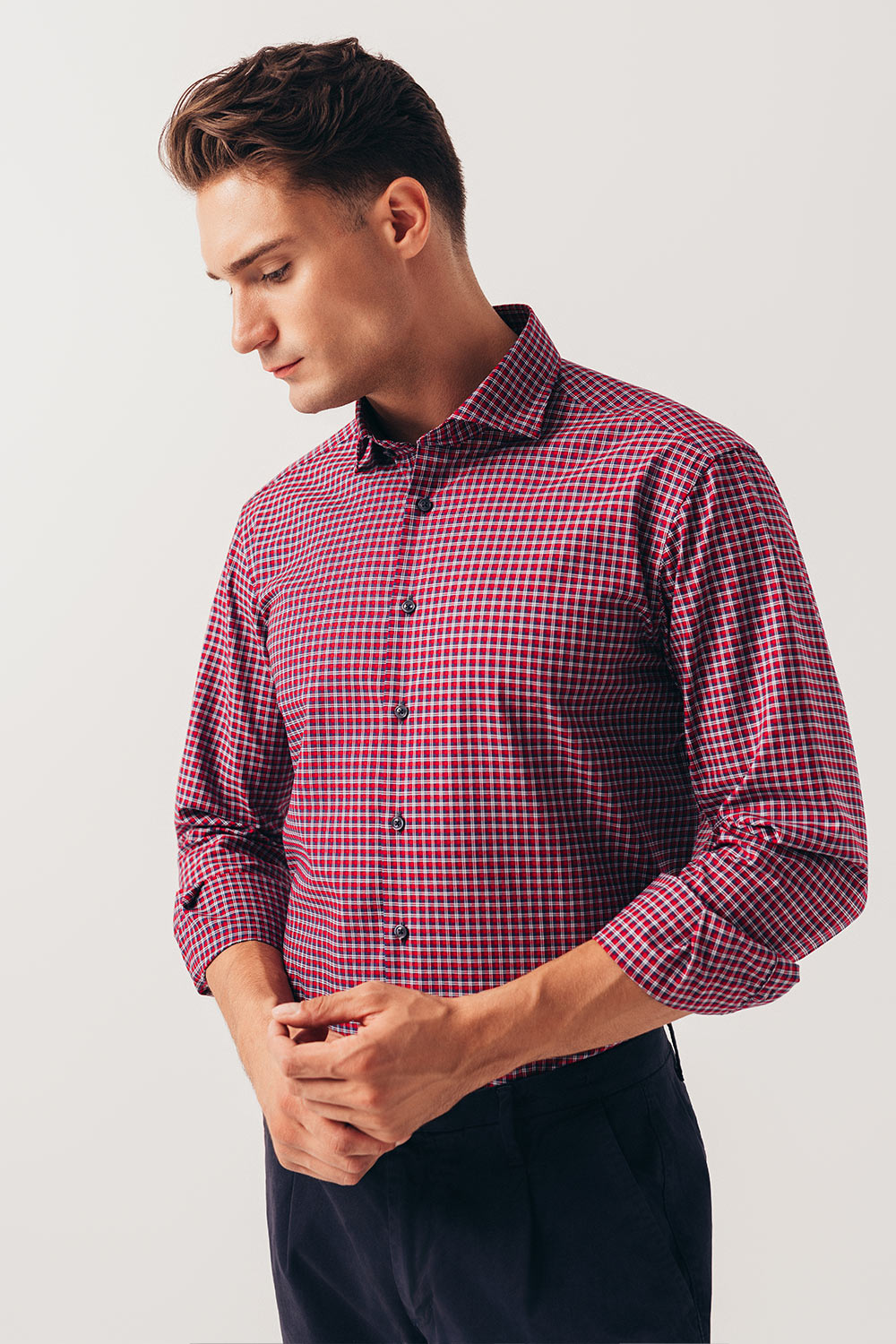 Crveno teget karirana košulja sa soft kragnom (783C)