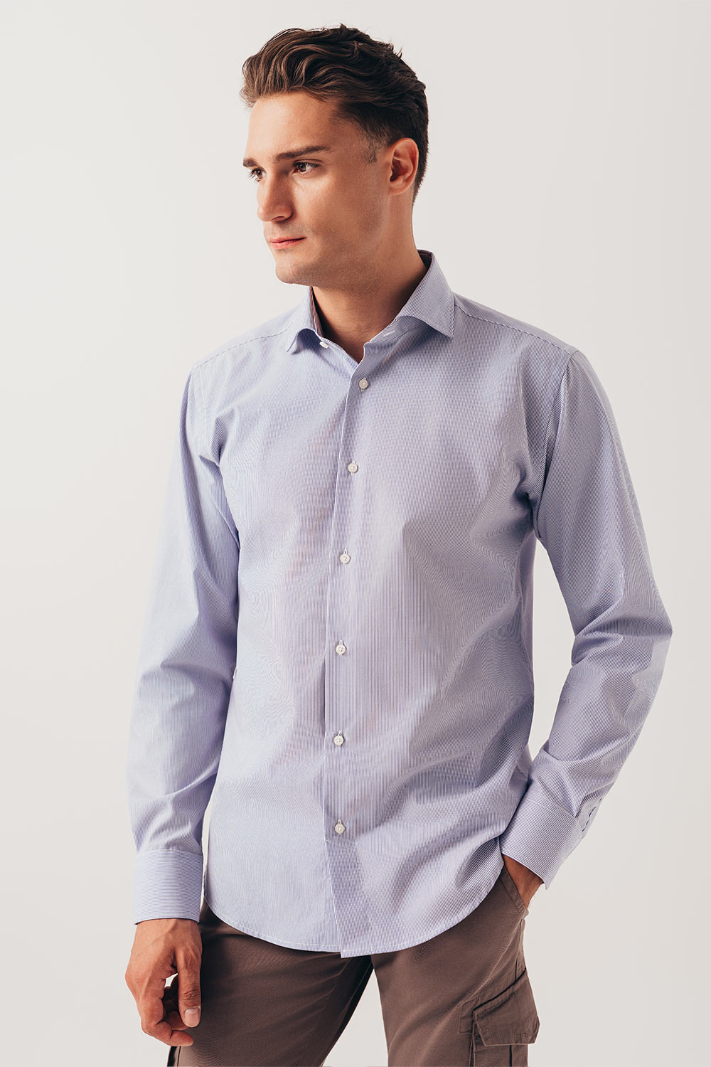 Plava prugasta Easy care košulja sa francuskom kragnom (784A)
