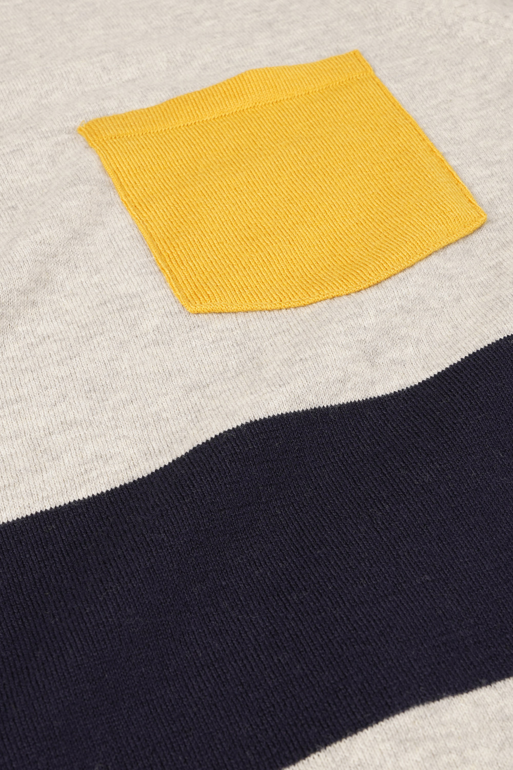 Pletena majica O izreza od laganog pamučnog džemper materijala. Izuzetno udobna i prijatna za nošenje. Na grudima ima funkcionalan džep u jarko žutoj boji.