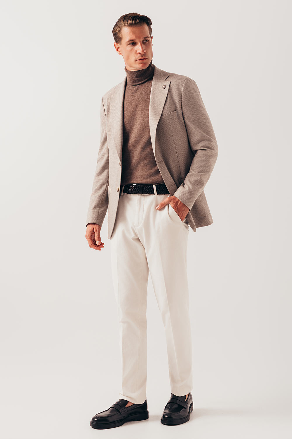 Garinello jesenja serija sakoa od pažljivo biranih materijala rađena u malom broju primeraka. Odmerene, svedene linije ovog sakoa pružaju osećaj elegancije, dok klasičan kroj nikad neće izgubiti na aktuelnosti. Lako se uklapa uz sve modne kombinacije bilo da vam je potreban formalan ili kežual izgled.