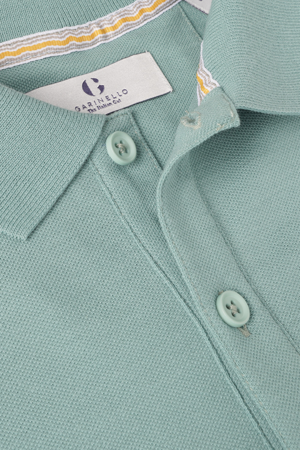 Garinello polo majica je klasik koji nikad ne izlazi iz mode. Komforna, udobna, idealna za tople letnje dane. Basic model izveden u jednom tonu za one koji vole jednostavnost. Kopčanje na dva dugmeta, rebrasta ranfla na rukavima, diskretni natpis brenda na bočnoj etiketi.